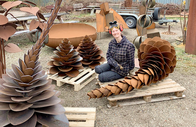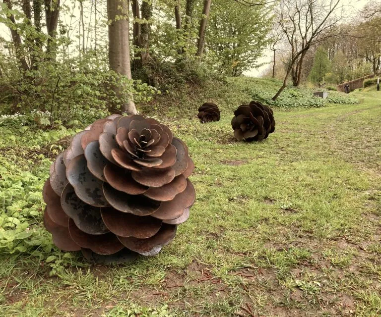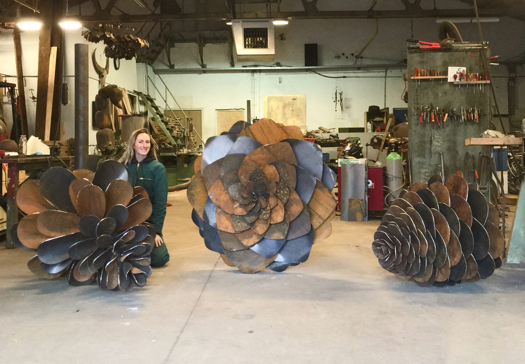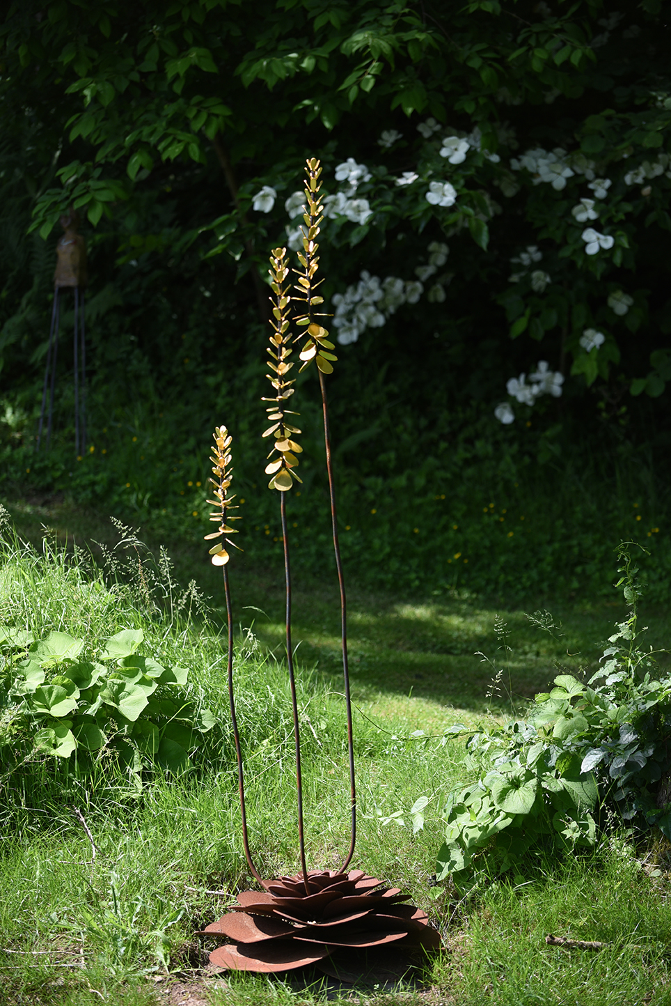 Kim Kenyon finds her inspiration in the many shapes and patterns in nature. Small and inconspicuous parts of the plant world are intuitively enlarged to stately yet delicate steel sculptures.